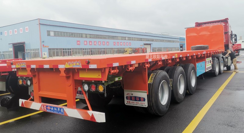 讓卡友滿意的歐陽華俊13米鋼板橋平板半掛車發往廣西 2021-07-16