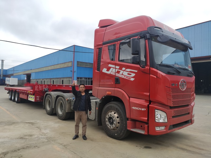 13.75米平板半掛車已然成為公路運輸的主力車型,憑借獨有的裝載優勢獨占鰲頭。歐陽華俊在13.75米平板暢銷車型上下足了功夫,品質絕對上乘,牢牢的抓住了司機朋友的心,四面八方客戶慕名而來,黃石談總就是其中一位忠實的客戶,來一起看看車,點評點評~ 感謝談總對歐陽華俊的