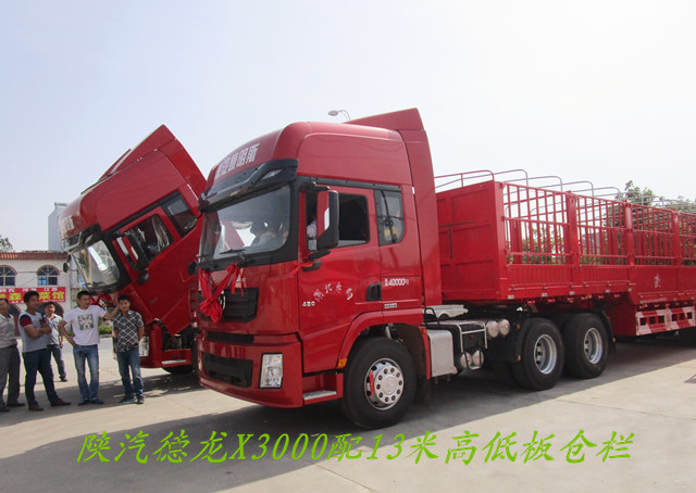 陜汽德龍X3000高端牽引車“全面領先成就老板,產品突破服務超越!陜汽德龍X3000配歐陽華俊13米高低板倉欄式半掛車,在路上行駛,猶如一道亮麗的風景線,吸引了無數的愛車卡友們。