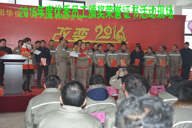 湖北歐陽華俊2015年終總結表彰暨新春聯歡會于2016年1月31日(農歷臘月二十二日)在公司內隆重召開。出席本次大會的成員有:湖北歐陽華俊董事長歐德發先生、湖北歐陽華俊總經理歐德保先生、基建部總經理歐德元先生以及各崗位的全體員工。今天,讓我們在這里歡聚一堂,共同暢想美好的明天,回顧2015,改變2016!