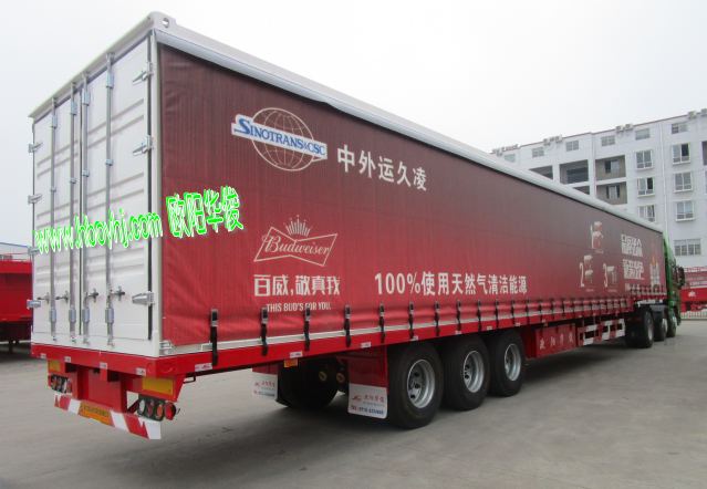 蓬布側簾簾式半掛車也稱蓬布集裝箱式半掛車、蓬布卷簾掀頂半掛車、骨架式蓬布卷簾半掛車等,下面一般配骨架半掛車便用。卷簾車上面的蓬布左右兩側及后面均能打開,簡化工藝,篷布可拆卸,非常方便,便于貨物裝卸,加上篷布價錢相對較低,能夠降低制形成本,加強市場的競爭力。該車曾經成為國外公路貨物運輸中的主導車型,也是當前廂式運輸車開展的一大趨向。因此適合各種物品的快速裝卸,在國外非常盛行。