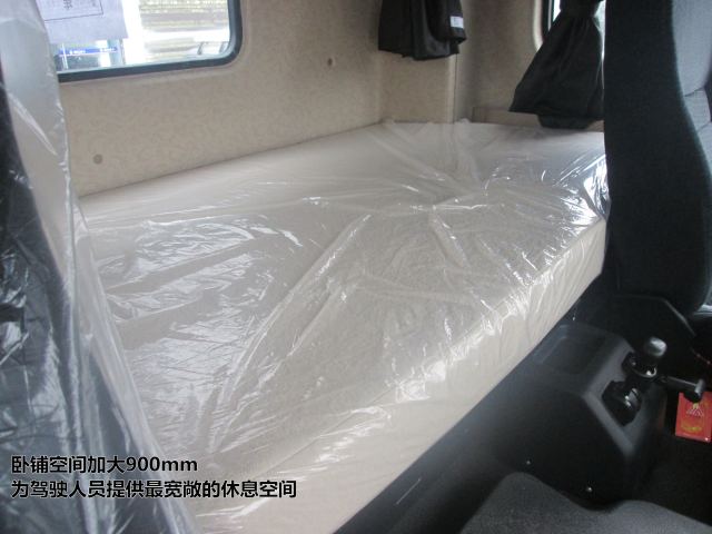 車(chē)型外觀(guān)采用X3000黃金版駕駛室,外觀(guān)大氣豪放,內(nèi)飾凸顯人性化,極大地滿(mǎn)足了用戶(hù)對(duì)舒適性的要求;內(nèi)飾采用黑色與米黃色兩種配色,駕駛室前部操作區(qū)為黑色,臥鋪為米黃色給人溫馨的感覺(jué),兩種顏色將工作區(qū)與休息區(qū)有機(jī)分開(kāi)。該車(chē)臥鋪很大寬度達(dá)到90厘米,寬度的提升得益于駕駛室后部凸起的設(shè)計(jì),很大程度的為司機(jī)提供寬敞的休息環(huán)境。