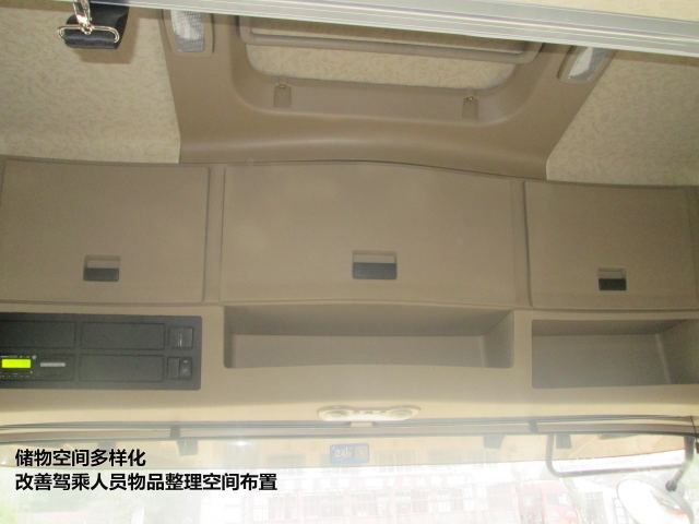 駕駛室頂部采用3大2小儲(chǔ)物格布局,可以存放一些日常用品,原車(chē)帶有行車(chē)記錄儀。