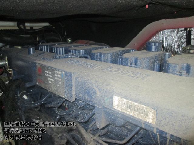 該車(chē)采用濰柴13升500馬力國(guó)五發(fā)動(dòng)機(jī),達(dá)到國(guó)內(nèi)很高排放標(biāo)準(zhǔn);