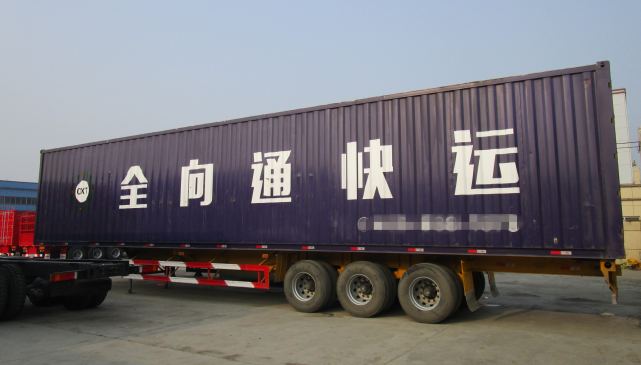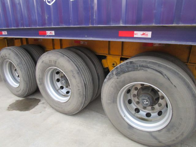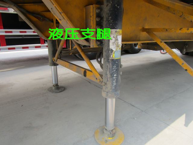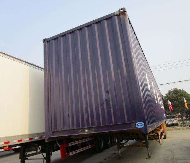 2臺骨架集裝箱半掛車:1臺為藍色,1臺為紅色。骨架式半掛車尺寸為:14.95米長×2.5米寬,上面集裝箱車廂尺寸為:16.5米長×2.8米寬×2.78米內(nèi)高。它們配的是質(zhì)量好的液壓支腿,使用的是廣州華勁13T+16T車橋,真空三包輪胎配套正興900鋼圈。
