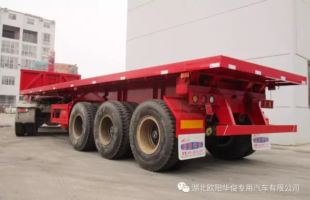 平板后翻自卸半掛車這款車型還可定做8米、8.5米、9米、9.5米、10米、10.5米長的規格,滿足客戶的不同需求。湖北歐陽華俊專用汽車有限公司規模大,實力強,值得信賴!看質量,聽口碑,選來找去還是歐陽華俊!
