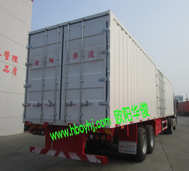 發布日期:2015-08-17 11:08:37 編輯:歐陽華俊 瀏覽量:4654下面介紹一下四川翟總定的這臺13米兩橋廂式半掛車,也稱:13米全封閉集裝箱運輸半掛車。此廂式半掛車尺寸為:外部尺寸是13米長×2.55米寬×不超4米高,內部尺寸是12.85米×2.45米×2.4米高,可做13米長2橋或3橋全封閉廂式半掛車,此車廂每邊開一對門,兩邊門對著開,方便裝貨運輸。