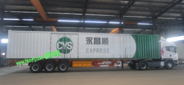 這5臺白色集裝箱上面的車身廣告由歐陽華俊公司負責噴漆制作,祝愿永昌順物流公司的運輸生意紅紅火火,一路發發發!
