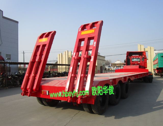 13米鉤機板運輸半掛車也稱挖機運輸半掛車,此半掛車為3米寬。感謝付總對歐陽華俊的支持與關注,祝您生意興隆,財源廣進!猴年發大財哦。下面分享下這臺紅色的13米3橋全新鉤機板運輸半掛車圖片: