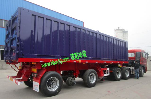 歐陽(yáng)華俊藍(lán)色集裝箱平板后翻自卸半掛車圖片(3)