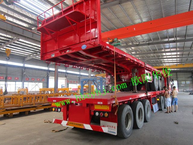 發布日期:2016-07-23 16:27:04 編輯:歐陽華俊 瀏覽量:24442臺10.5米直梁低平板完工交付,祝湖南提車熊師傅一路順風,財源滾滾!此平板半掛車尺寸為:10.5米長×2.5米寬×2.9米高。此低平板半掛車前面設計有前站板,整車車身采用優質鋼材,先進的技術,嚴格的生產工藝制造而成,整車結構合理、性能可靠、操作簡便、外型美觀,客戶對此平板車廂也非常滿意的。10.5米的長度短小精焊,自重輕且經濟實用,通過采用高強度特種鋼和結構創新,合理優化大梁結構,提高大梁的強度,增強大梁抗扭曲性并可以集中載貨,在減輕自重的同時,加強了承載能力,延長大梁使用壽命。公司采取靈活的生產經營方式,不論量大量小、要求繁簡,完全滿足客戶一系列要求,訂制式服務。