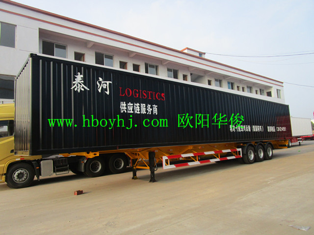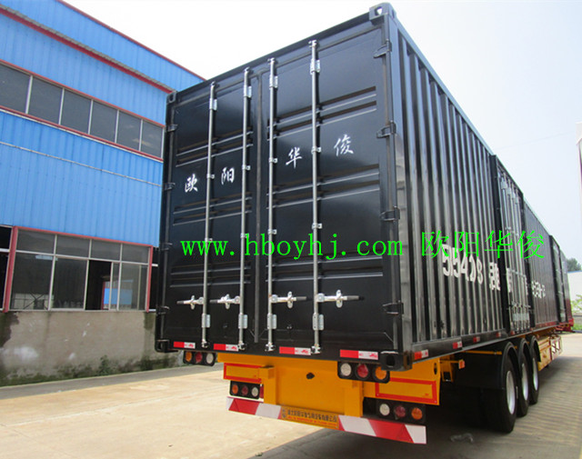 發布日期:2016-07-28 09:55:42 編輯:歐陽華俊 瀏覽量:247953英尺黃色骨架半掛車配18.5米黑色集裝箱完工了,此骨架半掛車的尺寸為16.385米×2.48米寬,集裝箱的尺寸為18.5米長×2.5米寬×2.6米高。骨架式集裝箱運輸半掛車裝卸方便,運轉速度快,改變了短途周轉空集裝箱堆碼需要叉車奔波的現狀。通過結構優化,產品的多樣性選擇,可滿足客戶的個性化需求。根據客戶需要,可生產鵝頸式、骨架式、平板式、低平板式等結構。