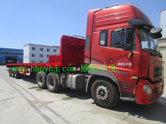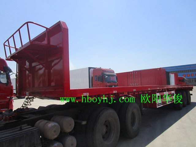發布日期:2016-09-05 11:46:55 編輯:歐陽華俊 瀏覽量:235613米直梁平板半掛車完工交付,祝湖南益陽的伍師傅一路順風,賺錢滿滿!伍師傅用13米的鎖桿式倉欄車車兌換的這臺13米直梁式平板半掛車。此13米平板直梁半掛車為尺寸:13米長×2.5米寬×2.9米前站板離地高,感謝所有的司機朋友們,對歐陽華俊掛車廠的關注與支持?!?strong>湖北歐陽華俊專用汽車有限公司歡迎您!