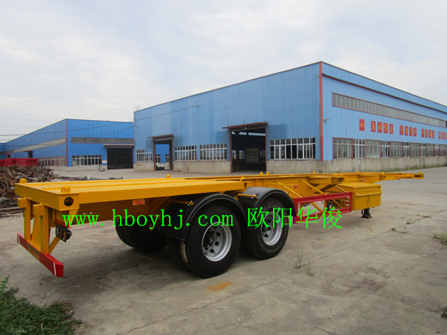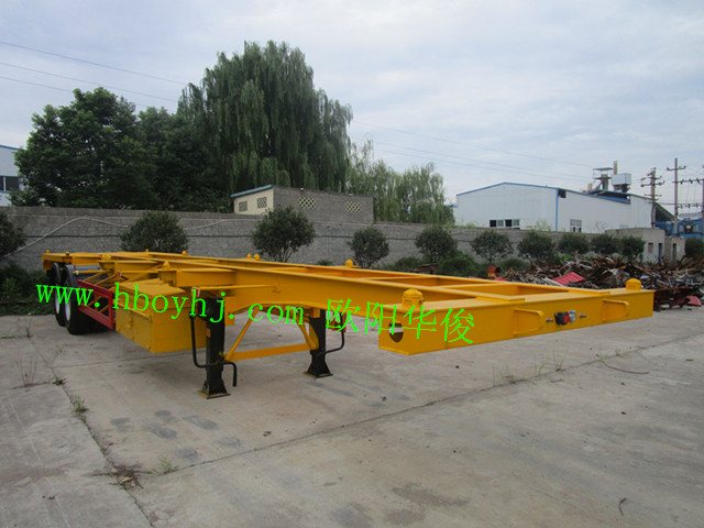 發布日期:2016-09-07 16:47:34 編輯:歐陽華俊 瀏覽量:2570漂亮的黃色2軸40英尺骨架半掛車完工交付,此骨架半掛車的尺寸為12.45米×2.5米寬,能長期的反復使用,具有足夠的強度。本公司生產的骨架式半掛車采用很佳的設計方案,結構合理,操作可靠,外觀優美,上面配2個20英尺集裝箱或1個40英尺集裝箱使用,發揮整車的很大潛能。祝湖北仙桃的余師傅車行萬里歡歡喜喜,人走八方順順當當!《湖北歐陽華俊專用汽車有限公司歡迎您》