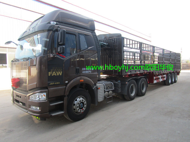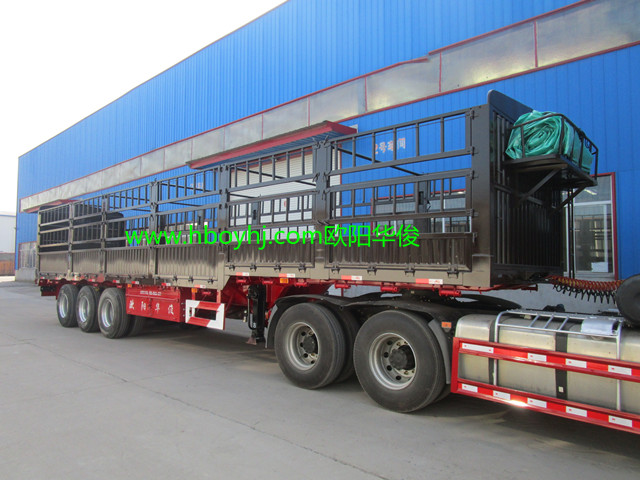 湖北歐陽華俊專用汽車有限公司生產的標準倉欄半掛車配件均為國內外知名產品,車架為穿梁式結構,采用優質鋼材、先進的技術和嚴格的工藝設計而成,從而保證整車性能穩定、操作方便、外形美觀。