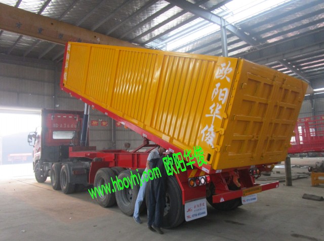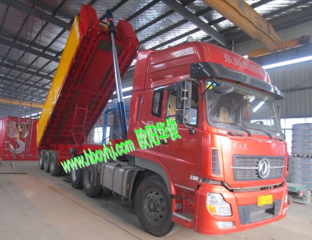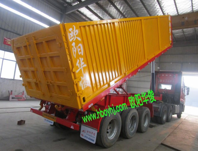 歐陽華俊8.5米黃色集裝箱紅色骨架半掛車圖片(4)
