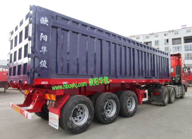 歐陽華俊9米集裝箱平板式后翻自卸半掛車圖片(1)