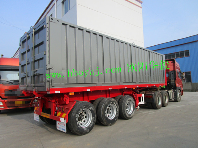 歐陽華俊2臺9米灰色平板集裝箱后翻自卸半掛車圖片(4)
