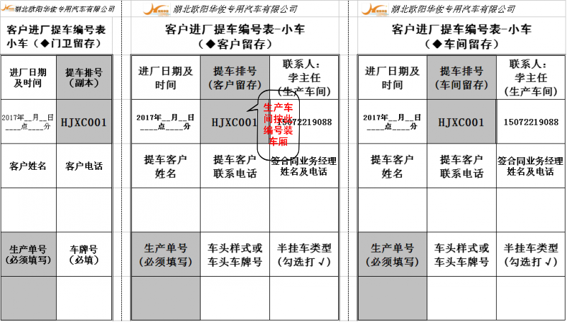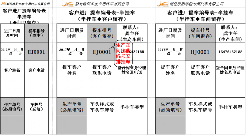 一、下面是半掛車系列《客戶進廠提車編號表》樣本: