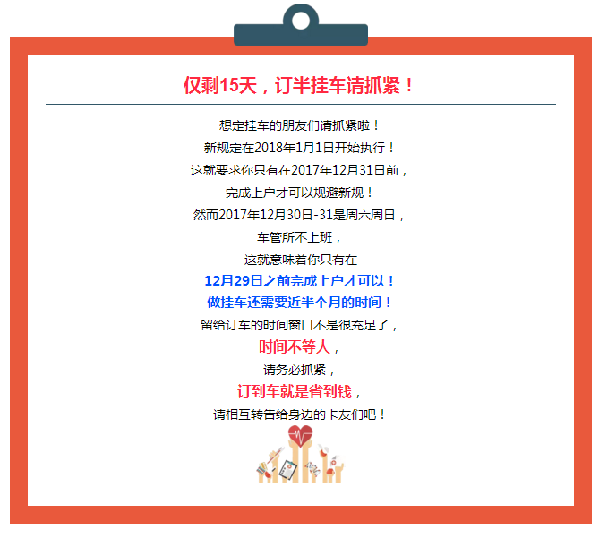 上述四項標準變化如按期實施,所有庫存訂單必須在2017年12月30日前完成上牌,后期可因標準變化而無法上牌。