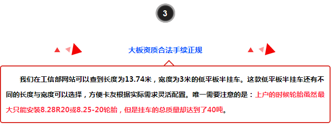 高能--13.74米平板半掛車比13米倉欄半掛車一趟多拉37方的貨!別人是“多拉快跑”掙錢,而擁有此板的人是“多拉少跑”賺大錢。眾所周知GB 1589-2016限值低平板半掛車總長為13.75米,同時限制牽引銷到車輛后尾長度不超過12米。我們此次推出的這款車型,完全符合國家工信部的要求。