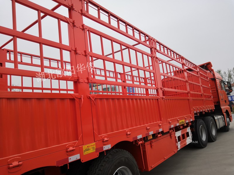 恩施客戶的13米高欄半掛車尺寸為:13米長×2.55米高×2米高。花欄樣式為上層30公分,中層80公分,墻板60公分。每邊6塊墻板,高板2塊,低板4塊。花欄的第一塊和第二塊向后開,低板的花欄對著開。這樣開啟花欄的優勢在于第一塊花欄打開時不會碰到車頭的駕駛室,低板對著開方面裝卸貨物。