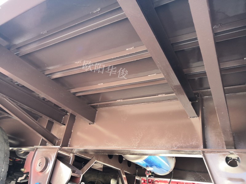 標(biāo)準(zhǔn)平板半掛車的貫穿梁采用槽鋼設(shè)計(jì),底板下鋪的有9根底槽支撐,加強(qiáng)承載力。自重在6.5噸-6.9噸左右,請(qǐng)根據(jù)你的拉貨裝載需求選擇掛車的相應(yīng)配置哦!