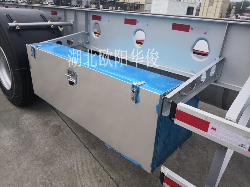 客戶在訂購該車型時,采用的是鋁合金支腿,鋁合金工具箱。大梁使用高強鋼材料制作。每邊有3套鎖具,此車在提升車架材料的基礎上優化車輛的結構,結合車輛有限元分析計算結果,對應力集中部位的結構再次優化,使得本車可靠性更高,質量更優。