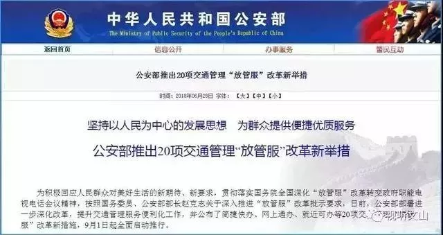 近日,公安部部署進一步深化改革,提升交通管理服務便利化工作,并公布了簡捷快辦、網上通辦、就近可辦等20項交通管理“放管服”改革新措施,9月1日起全面啟動推行。