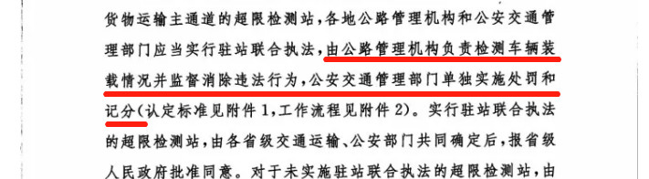 173號文件中明確規定,公路治超應該由路政和公安“聯合執法”,由公路管理機構負責檢測車輛裝載情況并監督消除違法行為,公安交通管理部門單獨實施處罰和記分。路政沒有單獨的執法權。