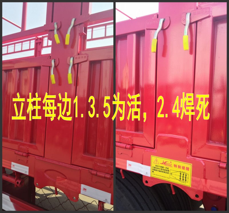 高欄的立柱圖片分享(按客戶的要求,每邊第1根,3根,5根為活,可取下。第4根和第6根為焊死外加格板固定好。此設計也方便裝卸貨物)