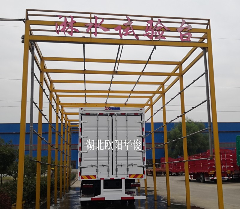 湖北歐陽華俊專用汽車有限公司早在2014年年底公司投資建立了“淋水試驗臺”,目的是檢驗本公司生產(chǎn)的所有廂式運輸車的車身密封性,更進一步提高廂式運輸車的產(chǎn)品質(zhì)量,踐行“車行天下,質(zhì)求完美”的理念,歐陽華俊淋水試驗臺成為廂式運輸車檢驗工序中的福音。