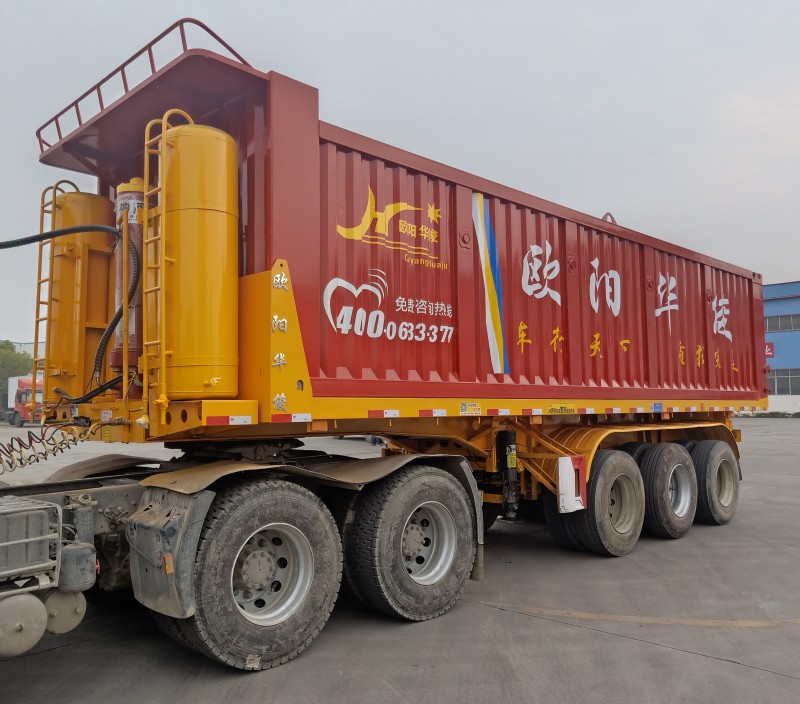 發布日期:2018-11-21 04:32:04 編輯:歐陽華俊 瀏覽量:23139米平板后翻自卸半掛車如期交付田總,后翻自卸車作為歐陽華俊暢銷車型之一,它具有重心低,舉升不易翻車等特點。