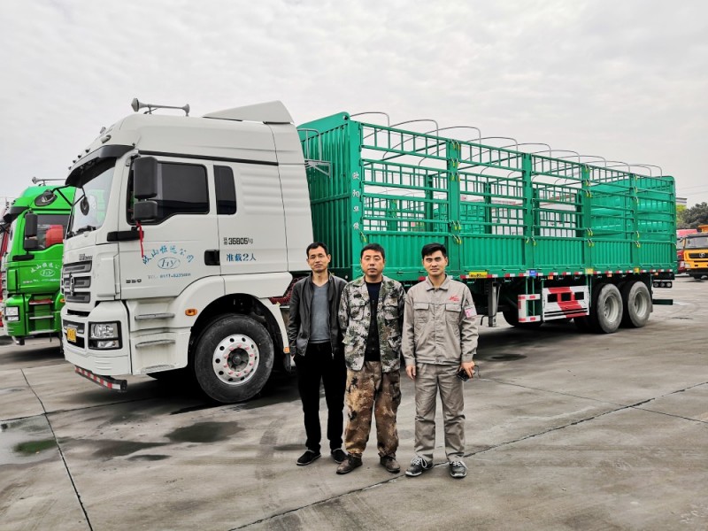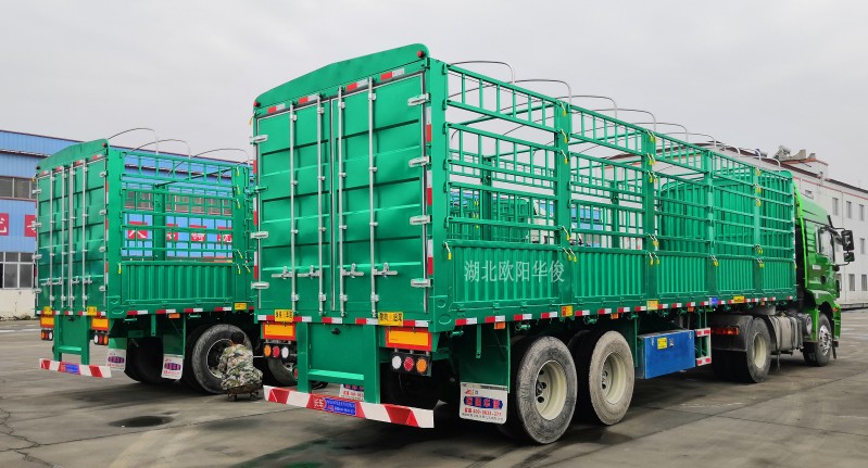 陜西客戶的兩臺10米兩軸高欄半掛車,整車自重5噸左右,用來拉綠通的。此輕型倉欄半掛車整車車身采用優質鋼材,先進的技術,嚴格的生產工藝制造而成,整車結構合理、性能可靠、操作簡便、外型美觀 ,客戶對此車廂也比較滿意。