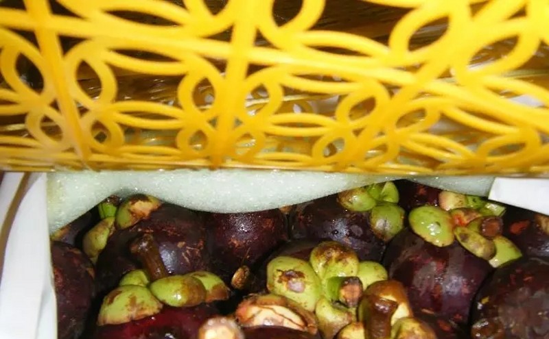 收費(fèi)站工作人員在驗(yàn)貨的過(guò)程中發(fā)現(xiàn),該車(chē)尾部裝載是正常綠通水果,但貨車(chē)前半部分裝載情況并不能一目了然觀察到。工作人員從狹窄的集裝箱頂部鉆入貨車(chē)內(nèi)部查驗(yàn)發(fā)現(xiàn),該車(chē)車(chē)廂內(nèi)部裝有山竹和鳳梨等非綠通貨物,隨即通知稽查人員。