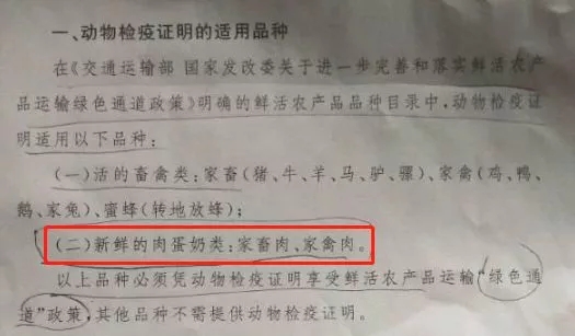 以下為卡友拍攝的《河北省交通運(yùn)輸廳關(guān)于印發(fā)畜禽及其產(chǎn)品運(yùn)輸車(chē)享受鮮活農(nóng)產(chǎn)品運(yùn)輸“綠色通道”政策必須提供的動(dòng)物檢疫證明適用品種及式樣》文件內(nèi)容: