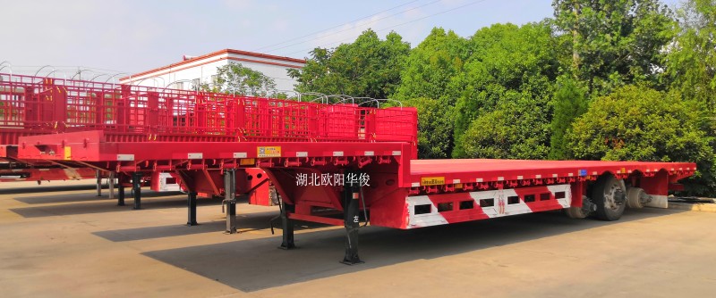 歐陽華俊13.75米長*3米寬高低式平板半掛車(前后等寬),配套等寬戶口(公司戶,正規(guī)手續(xù))出售啦!現(xiàn)車,看中可直接來提,買了就可以使用賺錢!