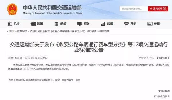 而不到一周的時間,交通運(yùn)輸部再次發(fā)布《收費(fèi)公路車輛通行費(fèi)車型分類》行業(yè)標(biāo)準(zhǔn)的公告。