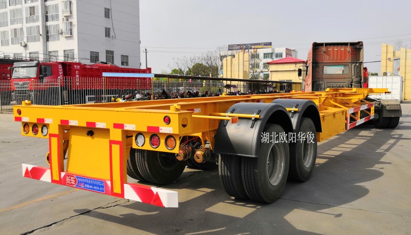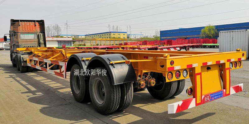 45英尺2軸骨架半掛車尺寸:13.95米長*2.5米寬