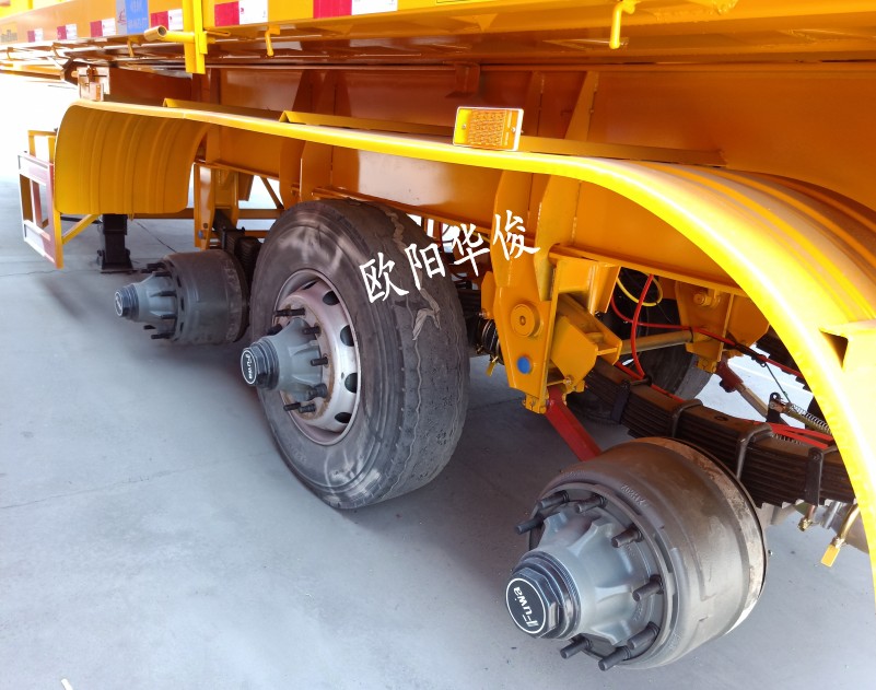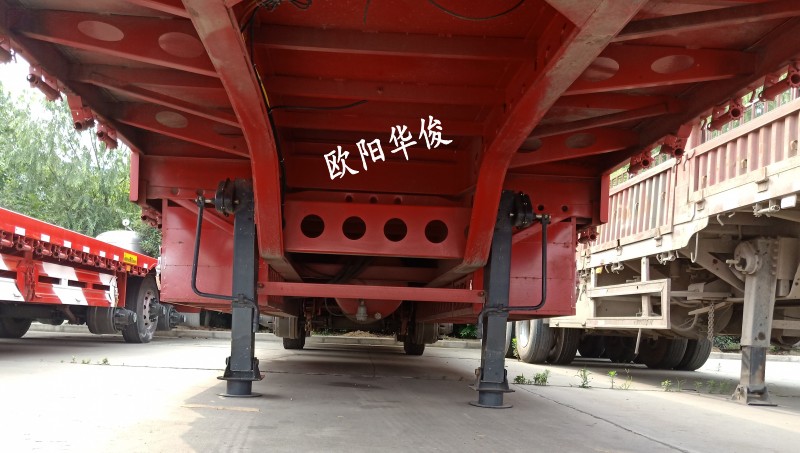 基本配置如下:大梁上8,下10,中腹板5,車橋采用正宗廣東富華13T車橋16T剎車,帶ABS,帶自動調整臂,4×20板簧,顏色:華俊大紅,28T單動支腿,花欄平分,輕量化配置,車身自重輕。