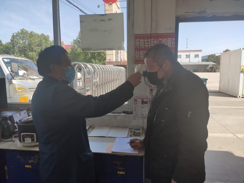 對進廠的外來人員進行體溫檢測并登記在冊,查看“綠碼”后全身消毒才允許放行。