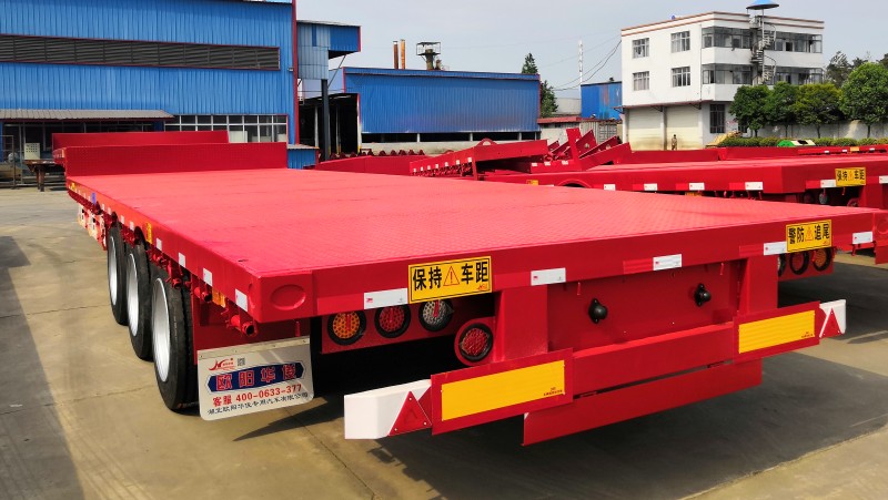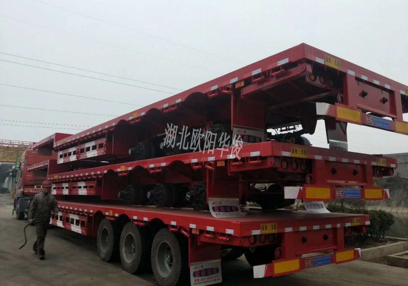 歐陽華俊13.75米低平板半掛可按客戶要求設計為鋪底槽,方便走叉車配置,也可按客戶要求設計為拉挖機配置,滿足實際貨物運載需求。歐陽華俊掛,必屬精品!歐陽華俊掛質量經得起檢驗......