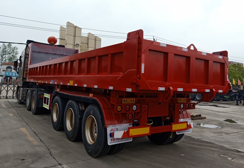 此后翻自卸半掛的尺寸為:9.5米長×2.55米寬×60公分墻板高,承載面高度低,裝貨重心低,有效提高車輛行駛的安全性,同時上裝箱體與車架貼合緊密,也增加了車輛的行駛穩定性。