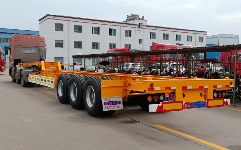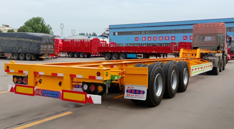 【骨架集裝箱介紹】骨架式集裝箱半掛車即集裝箱半掛車載貨部位為集裝箱結構的半掛車。使用集裝箱轉運貨物,可直接在發貨人的倉庫裝貨,運到收貨人的倉庫卸貨,中途更換車、船時,無須將貨物從箱內取出換裝。可以進行快速裝卸,并可從一種運輸工具直接方便地換裝到另一種運輸工具。