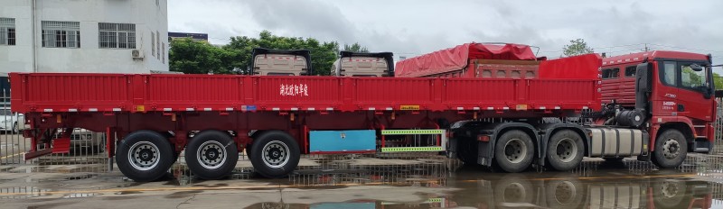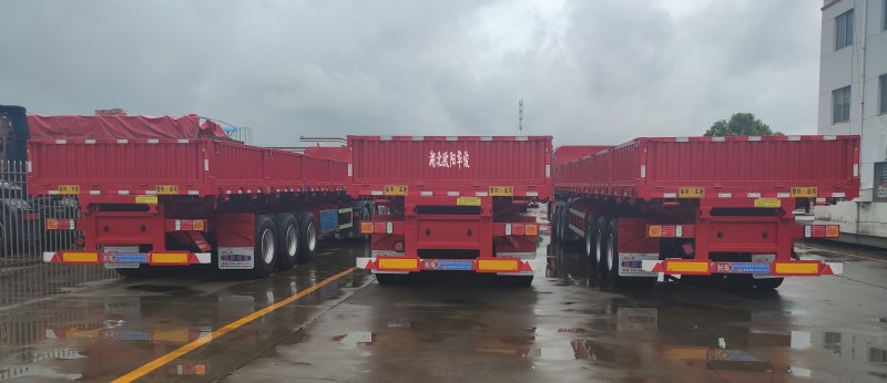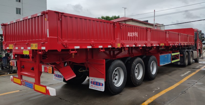 區(qū)域銷售經(jīng)理免費(fèi)為您提供方案【華俊喜報(bào)】5臺(tái)13米側(cè)翻自卸半掛車交付任總-發(fā)車武漢