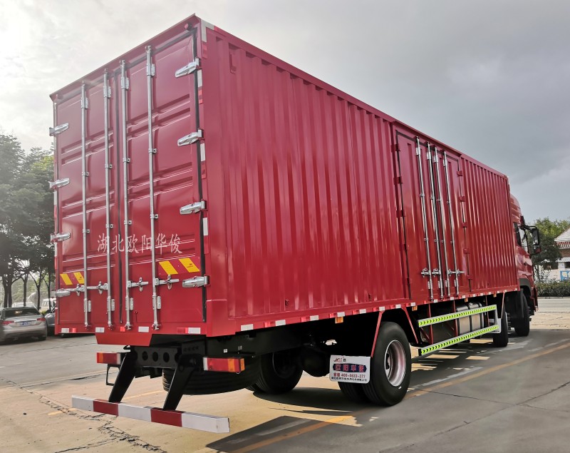 歐陽華俊9.6米集裝箱配新款天龍292馬力載貨車交付李總