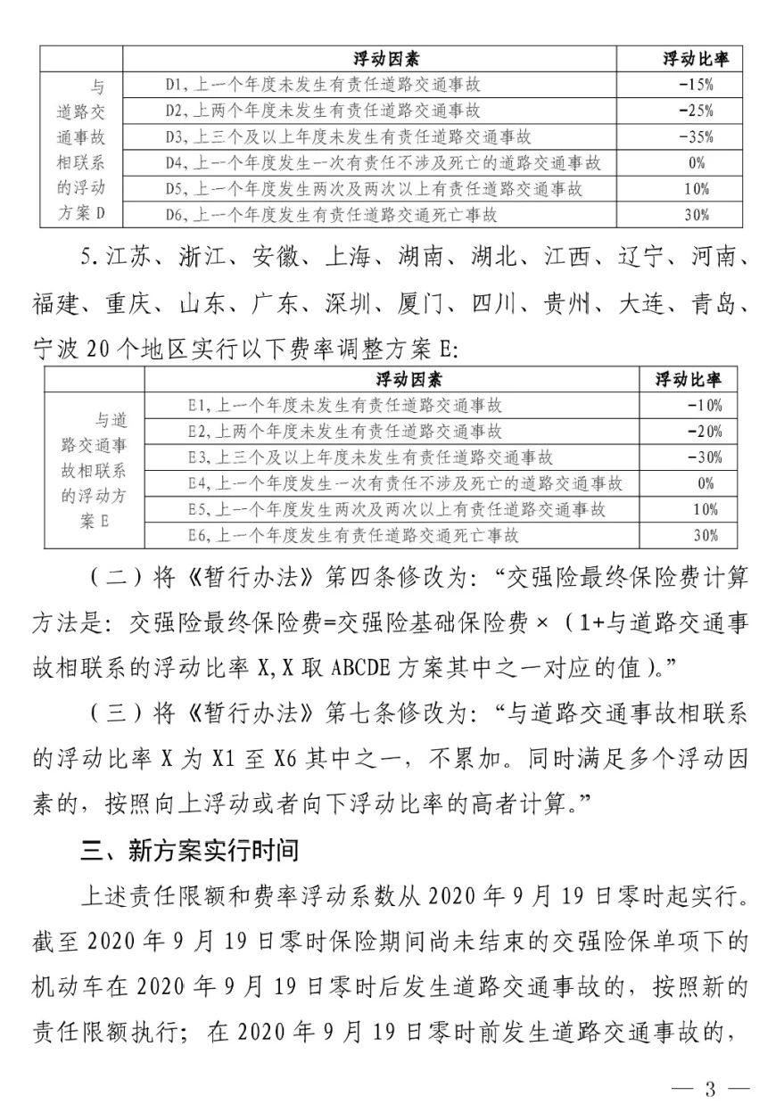 發布日期:2020-09-20 03:30:58 編輯:歐陽華俊 瀏覽量:20702020年9月9日,中國銀保監會發布《關于調整交強險責任限額和費率浮動系數的公告》(2020年第2號),將于2020年9月19日正式實施。《公告》明確,2020年9月19日零時后發生道路交通事故的,新、老交強險保單均按照新的責任限額執行。