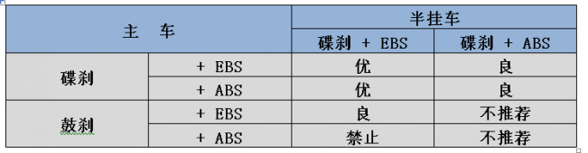3、與帶有EBS電子制動(dòng)控制系統(tǒng)的新型半掛車所匹配的主車必須裝配有EBS或ABS,推薦裝配EBS。EBS電子制動(dòng)控制系統(tǒng)是在防抱死系統(tǒng)(ABS)與防側(cè)滑(ESP)的基礎(chǔ)上升級(jí)而成的控制系統(tǒng)。其主要作用是減少了制動(dòng)系統(tǒng)的響應(yīng)時(shí)間和建壓時(shí)間,可實(shí)現(xiàn)整車電子制動(dòng)力的分配和主、掛車一致性控制,縮短整車的制動(dòng)距離,提升整車的整體制動(dòng)性能。