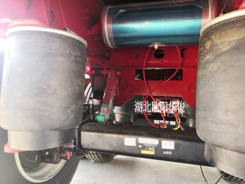 5、與新型半掛車所匹配的主車要求采用空氣懸架,不建議主車采用板簧懸架。因?yàn)榭諝鈶壹芨叨葮?biāo)定后空載及重載時(shí)車輛重心高度基本一致(不考慮輪胎下沉),若采用板簧懸架重載時(shí)主車重心下降過多,導(dǎo)致掛車前低后高,姿態(tài)角不正確。