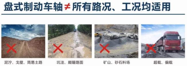 5、裝配空懸、碟剎的新型半掛車當(dāng)遇到泥濘、沙土、坑洼、砂石等惡劣路況時(shí),通過后應(yīng)及時(shí)停車檢查制動(dòng)盤及氣囊是否存在異物并及時(shí)清理。